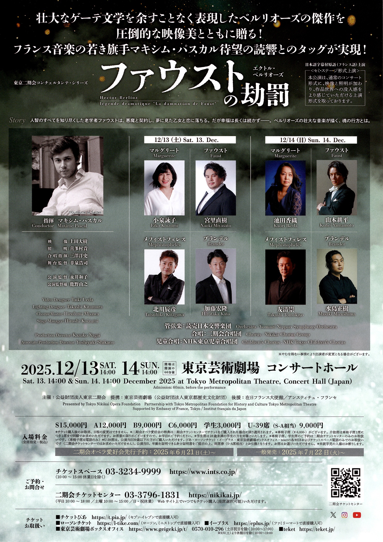 二期会の演奏会形式の公演は、12月13日土曜日及び14日日曜日、池袋の東京芸術劇場コンサートホールで両日とも14時開演。