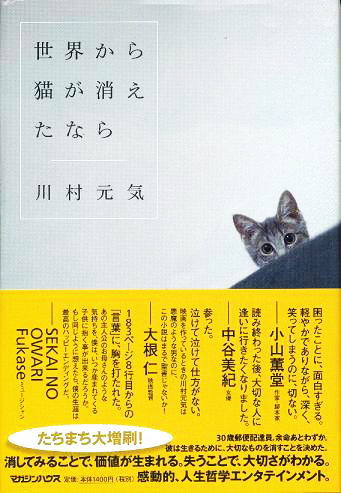風邪を引きながらだけれど、一冊だけ読書をした。字が大きく読みやすい本。でも、とても感動した。タイトルは「世界から猫が消えたなら」。川村元気著、マガジンハウス。この著者、映画プロデューサーなんだ。