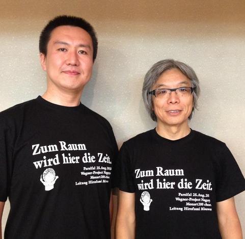 事務局では、沢山作ったから、僕の関係する合唱団や団体で、もし売れたら売ってくれるとありがたいという。そこで、6月22日土曜日朝の東京バロック・スコラーズの練習にわざと着ていった。そうしたら、なんとアンフォルタス役で出演するバリトンの初鹿野剛(はつかの たけし)君も着てきたじゃないの。彼のところにも昨日届いたという。