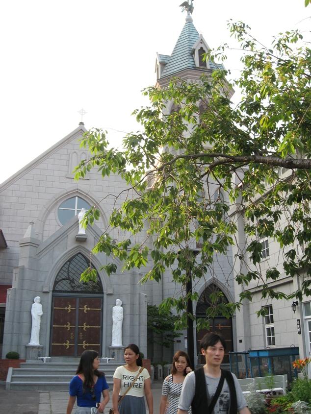こんな風に、せっかく函館に来ても、僕たち夫婦は五稜郭も行かずにこんな所ばかり来ている。最初の日の28日月曜日、4時頃ホテルに着いてから7時の練習までの間にまず何処に行ったかというと、市電に乗って元町の教会群を訪ねた。カトリック信者の僕達夫婦だから、まずはご挨拶にとカトリック元町教会、次いで聖公会の聖ヨハネ教会、そして有名なハリストス正教会など次々と訪問した。