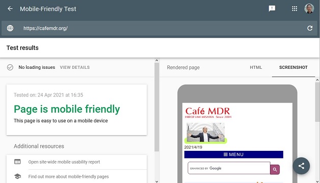 MDR「今日この頃」の在来コンテンツのリニューアルが終了し、Google社のモバイル・フレンドリー・テスト(2021年4月24日)、モバイル・ユーザビリティ確認(2021年5月2日)を実施しました。